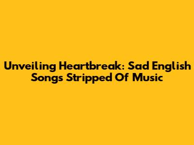 Unveiling Heartbreak: Sad English Songs Stripped Of Music