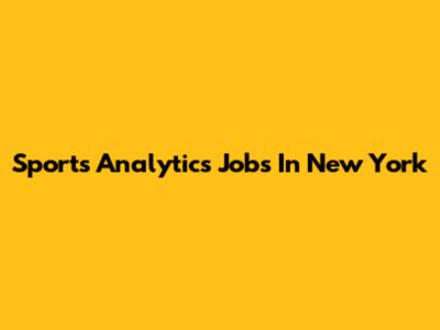 Sports Analytics Jobs In New York