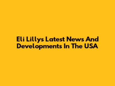 Eli Lilly's Latest News And Developments In The USA